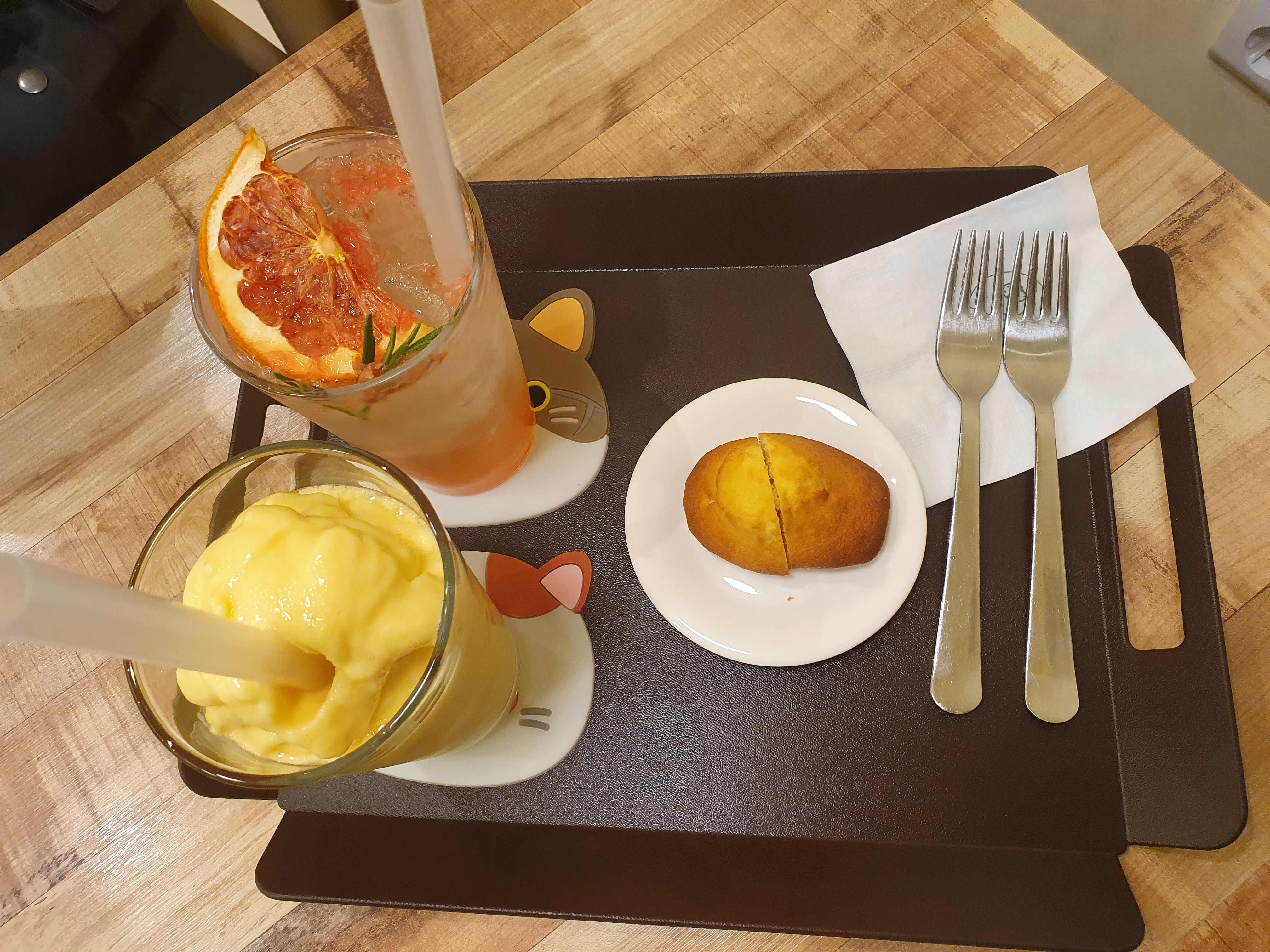 다음에 또 가서 똑같이 먹은 망고스무디와 자몽에이드 그리고 마들렌~