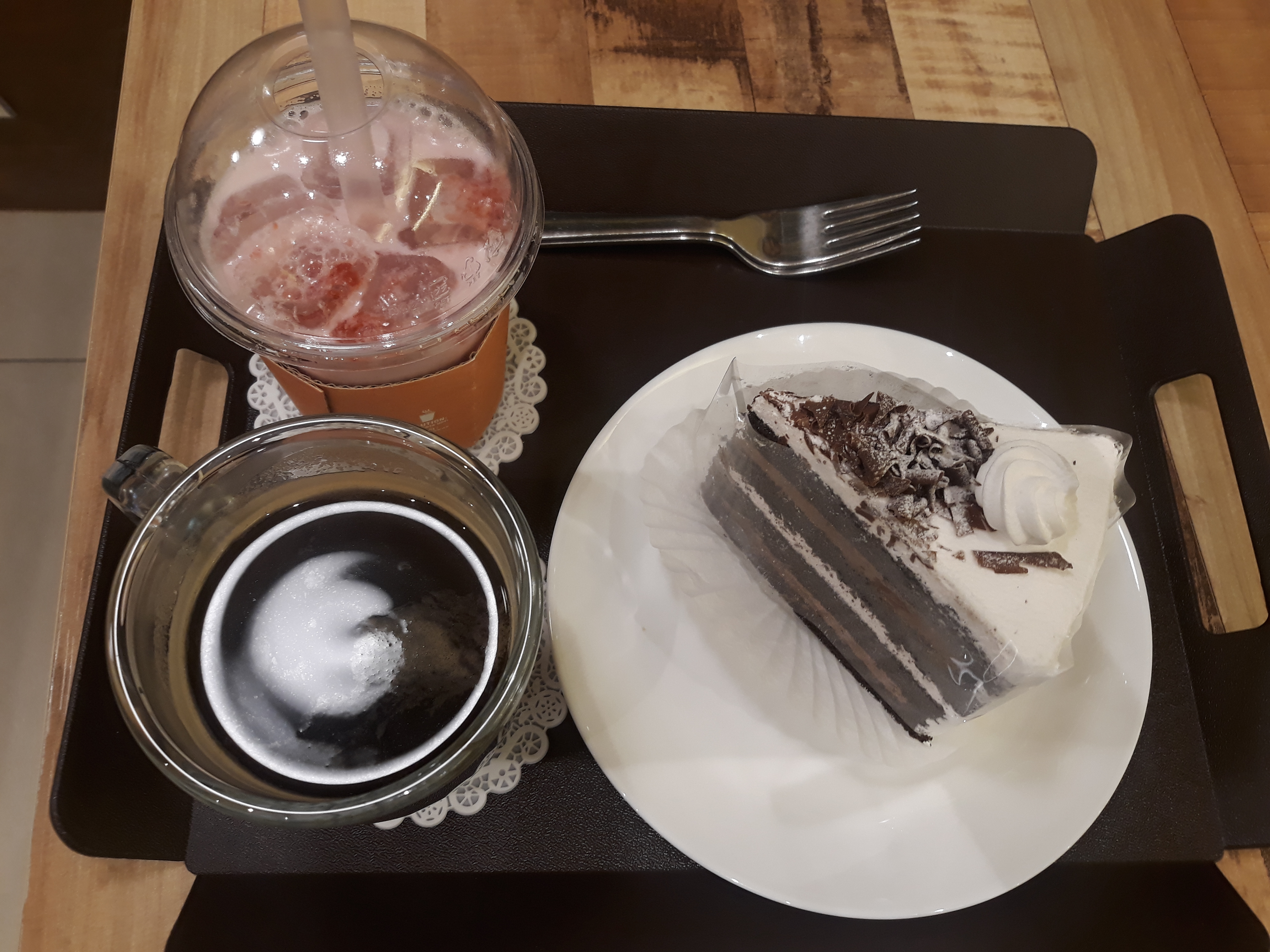 왼쪽에 케이크가 엄청 맛있어 보여서 하나 먹어보았어요